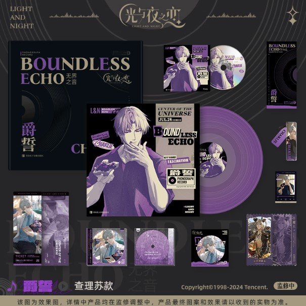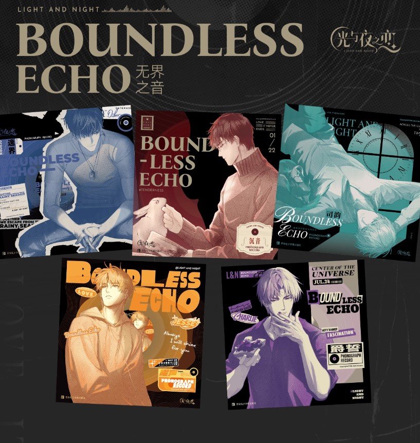 Boundless Echo is a premium vinyl collection featuring the original soundtrack from the otome game 《Light and Night》. Created for fans and collectors, this box set brings each character’s story to life through carefully curated music and exclusive illustrated vinyl covers.