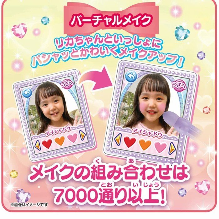 Video Penggunaan bisa di cek di deskripsi yaa You can take a selfie with the built-in camera and use the stylus to play with makeup. There are over 7,000 combinations of eye shadow, false eyelashes, blush, lips, and more! There are also many other features that can be played with the camera, such as interesting face parts and photo frames. There is also a story mode where you can make up and coordinate with Licca-chan. You can also save and post the images you create to Liccastagram, a popular social networking service, and enjoy playing with them. It also includes a shopping mode and mini-games. Including: Main unit (1), Touch pen (1), User #39;s manual (japanese) (1) Company: Takara Tomy the item is in japanese only order@toagraphicbook