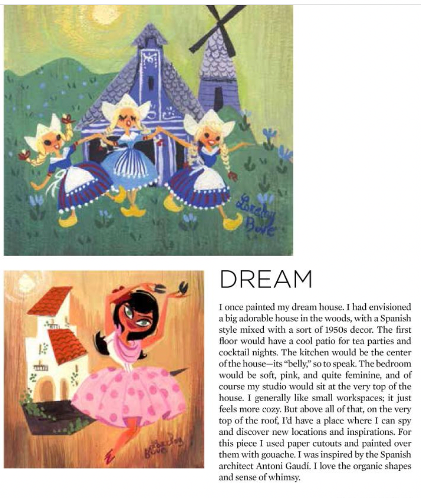 Her inspirations include her father who is an artist in his own right, as well as her tight knit family, Disney classic films, old Hollywood movies and her native Spain. Bove has also illustrated the Toy Story picture book , The Princess and the Frog Little Golden Book, the Wreck-It Ralph Little golden book  and the Monsters University Fearbook.